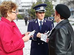 Acțiune de prevenire a polițiștilor teleormăneni în centrul muncipiului Alexandria prin împărțire de pliante pentru a reduce numărul celor înșelați prin metoda “Accidentul”.