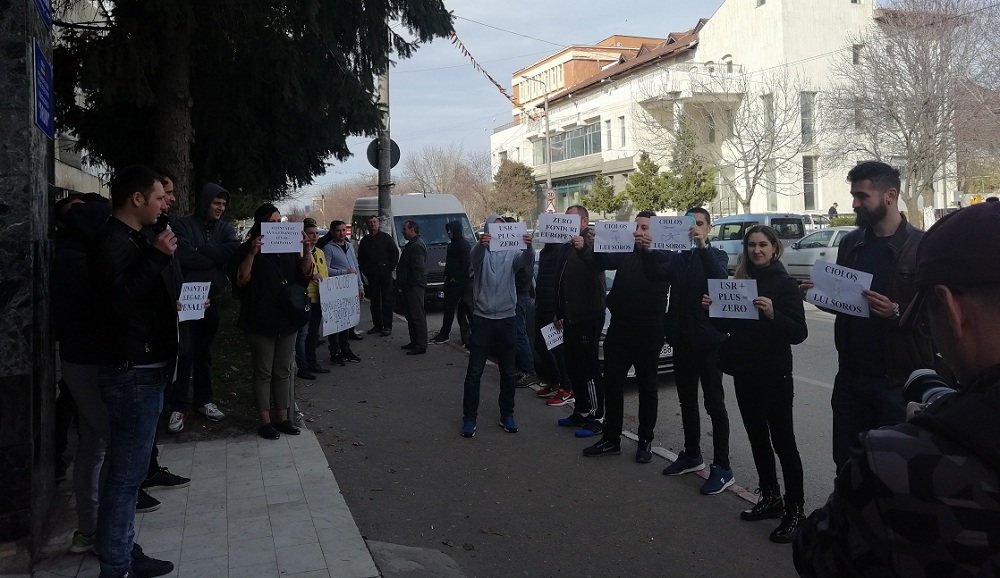 l-au așteptat pe Dacian Cioloș în fața Casei de Cultură cu pancarte, pe fiecare